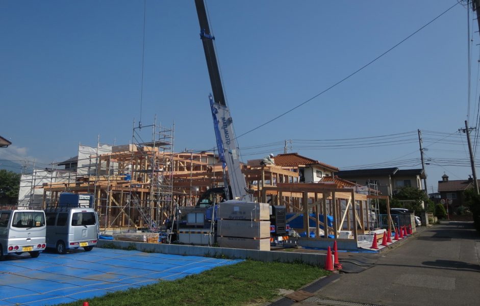 東筑摩郡山形村で工事中の住宅「ひなたぼっこの家」