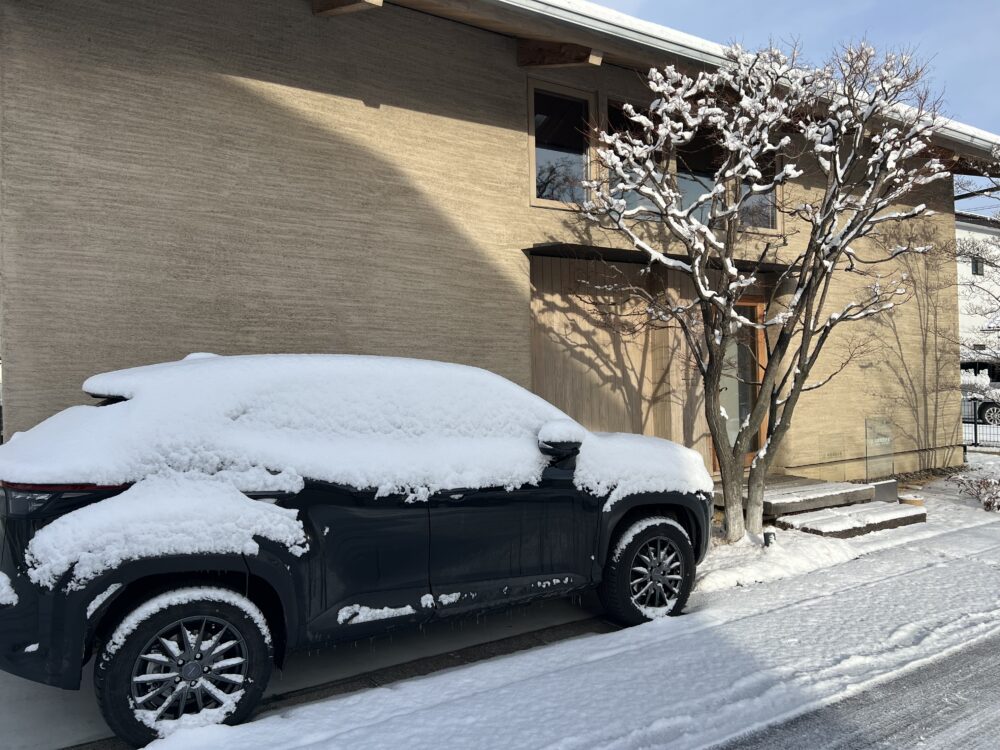 写真は松本市の事務所。(2026.2.8)今年初の雪かきをしました。