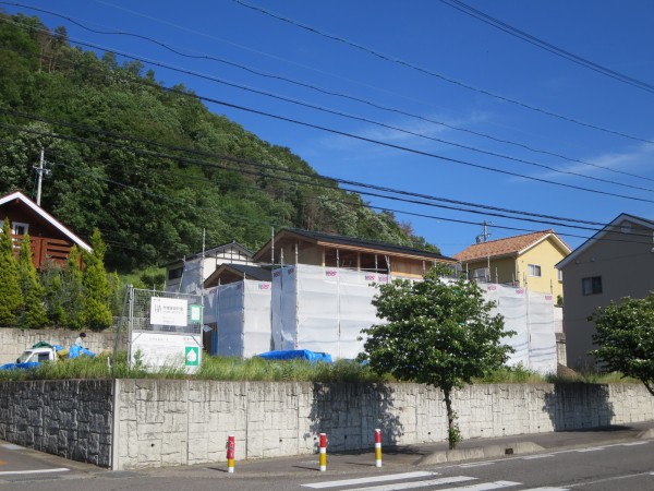安曇野市内で工事中の住宅「庭につつまれる家」が上棟しました。