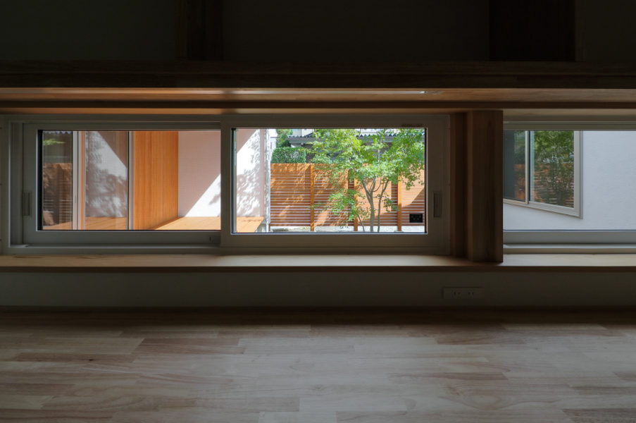 平屋, ガレージ, コートハウス, 軒下空間, 外壁板張り