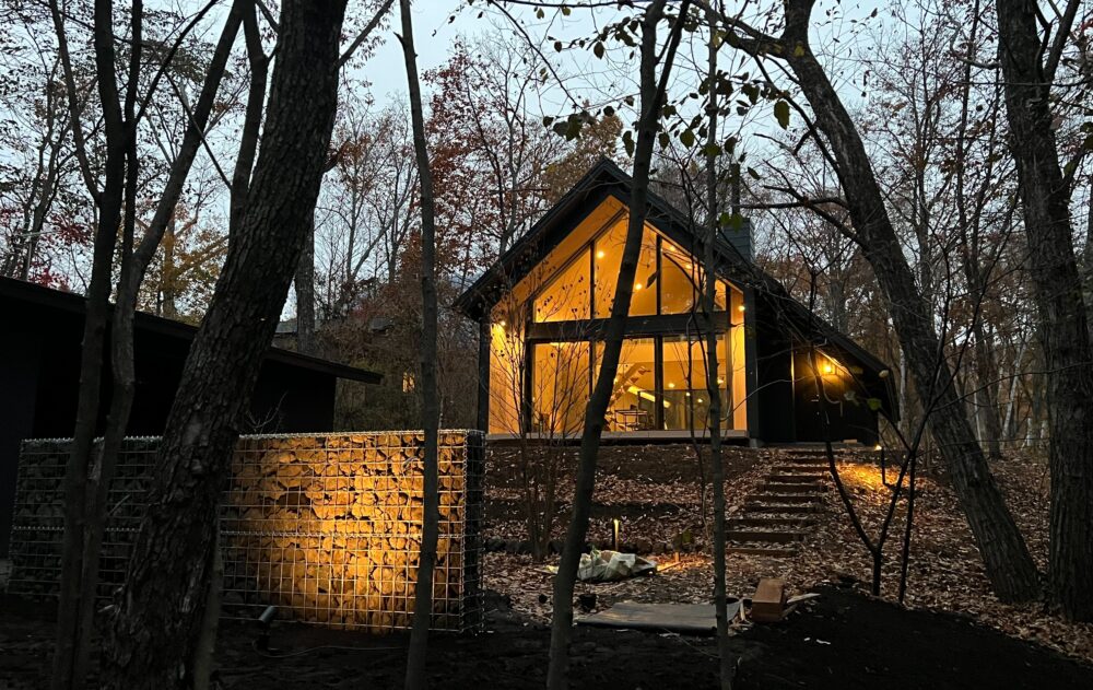 ガレージ, 薪ストーブ, 吹抜け, 軒下空間