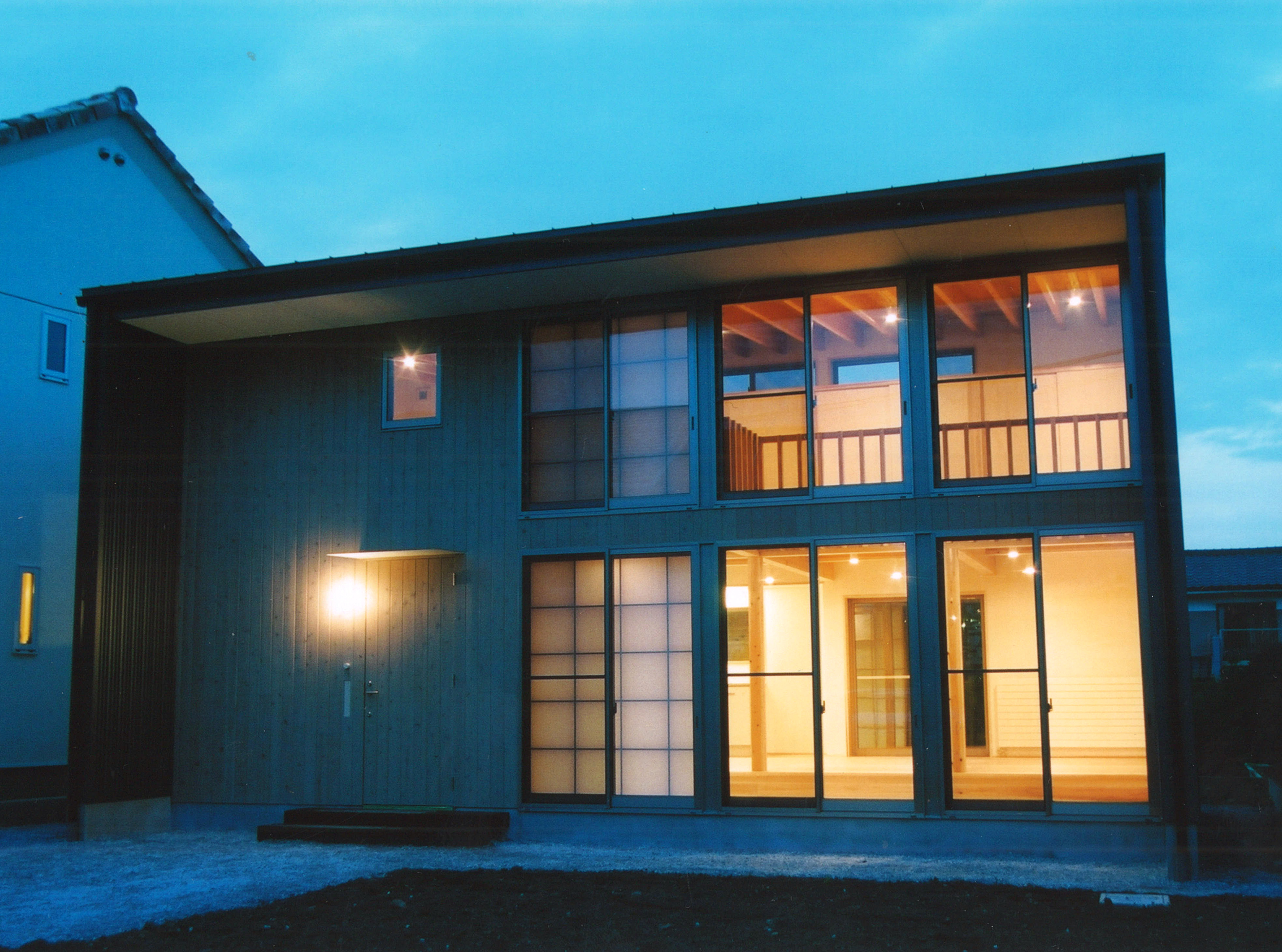 そして 1~2階をつなぐ吹抜けには大きな開口部を設け、障子の開閉によっていろいろなシーンを演出することができる。