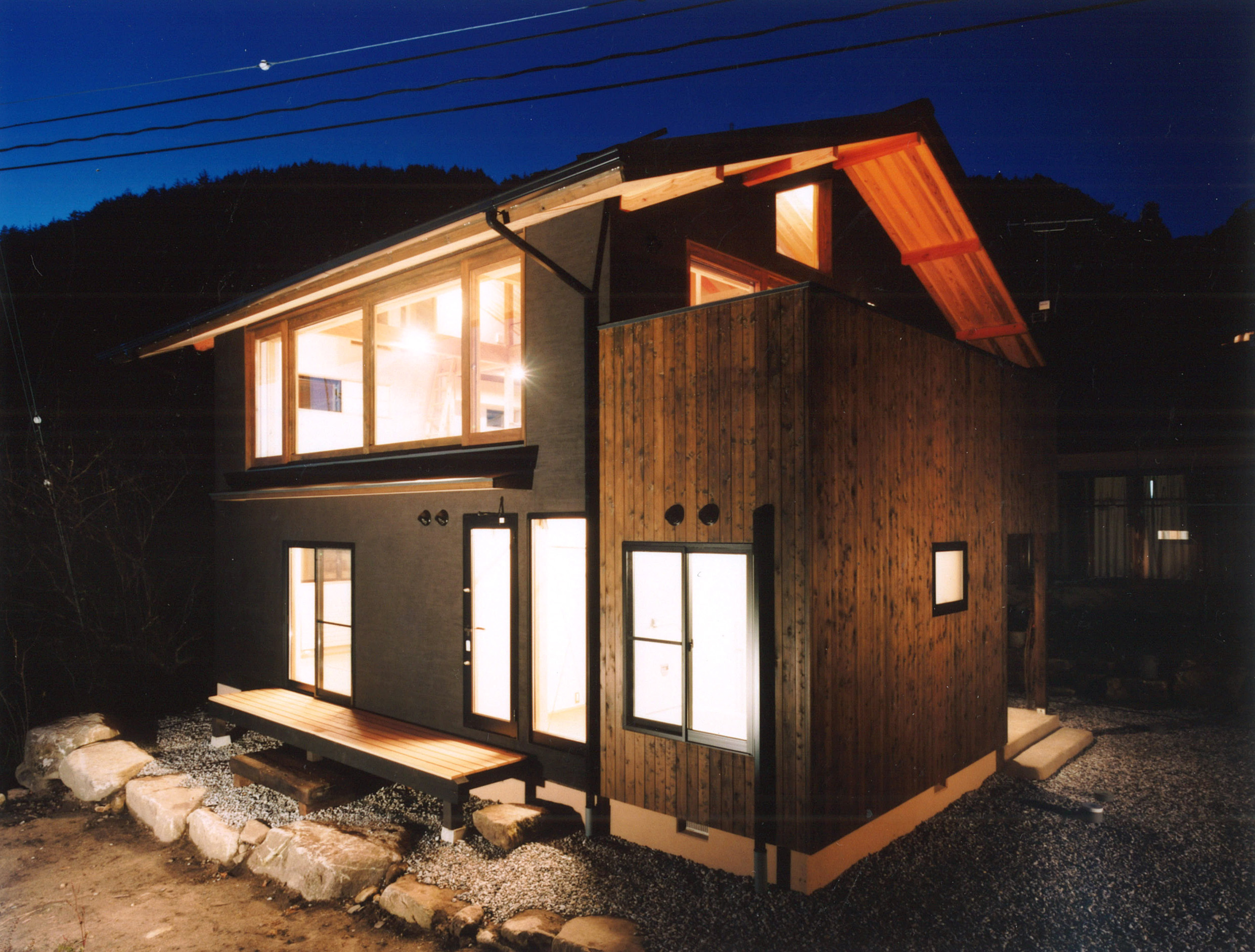 北側に隣接するご両親の家、緩やかに傾斜する地盤、南側に大きく開ける眺望、山並みを背景にした恵まれた自然。昨年の春はじめて敷地を見た時、敷地の置かれている周辺環境と建築とを、いかにして融合できるかを考えた。自然に背を向けるのでなく溶け込むような外観、そして周囲の静かで澄んだ空気と、室内が一体となるような大らかな開放感を目指した。