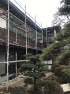 その関係で外壁の補修工事も必要になり、しっくい塗りや板張りの工事を行なっています。