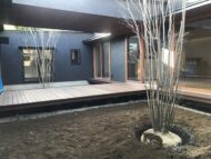 中庭にシンボル的な株立ちの木(ヤマボウシとトネリコ)を植えます。