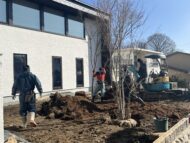 春になるのを待って、そして竣工のタイミングに合わせての工事です。