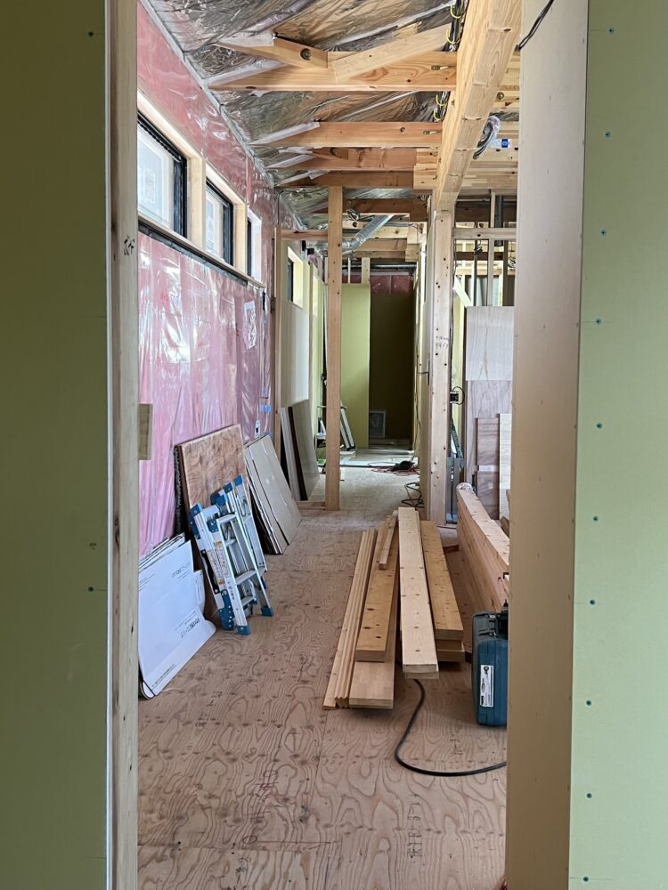 それと並行して、外壁と屋根の断熱気密工事が完了。