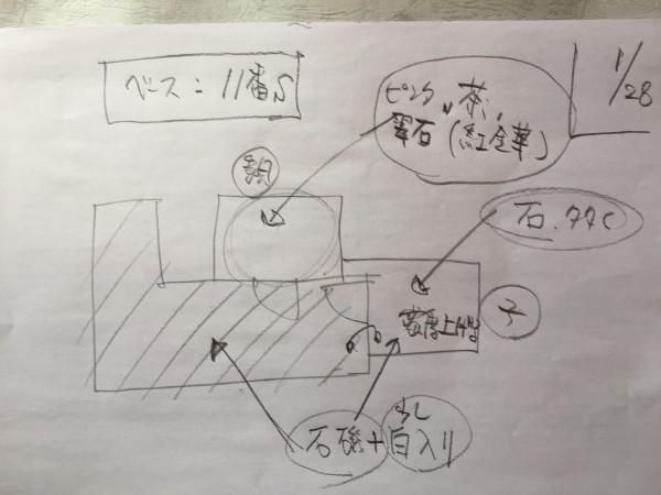 土間のたたきに使う骨材について、お願いしました。(謎のメモ)