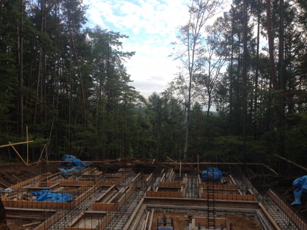 蓼科アトリエ、配筋検査。基礎のベース筋を確認しました。